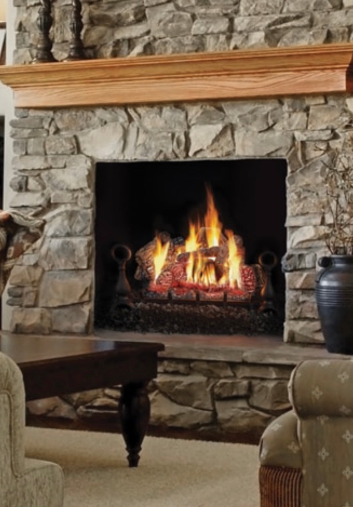 Empire Sassafras Single-Sided 24” Ventless Gas Log Set Intermittent Burner with Remote- Natural Gas